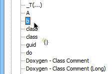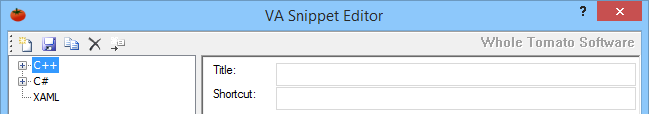 Visual Assist installs with two VA Snippet editors, the older of which is available in Visual Studio 2008 and older IDEs. You can use the editor to create, modify, and delete VA Snippets.