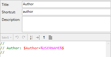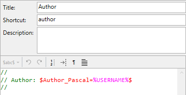 Input placeholders are case sensitive, so a VA Snippet that includes $Author$ and $author$ will prompt for both values.