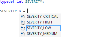 When you define a symbol of a type or typedef for which there is a VA Snippet of type smart suggestion, Visual Assist suggests the snippet's enumerated values as an initial value for your symbol.