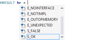 The remaining VA Snippets that support Smart Suggestions define value that Visual Assist may offer when you assign or compare variables of built-in or user-defined types. For example, when you define a variable of type HRESULT, Visual Assist uses the VA Snippet for "HRESULT" to suggest initial values.