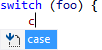 The VA Snippet for "switch" contains a list of suggested labels when programming switch statements.