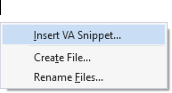 If you want to include a new VA Snippet in the Insert-VA-Snippet menu, make sure to clear its shortcut field. The VA Snippet will be available in the Insert-VA-Snippet menu immediately after you close the VA Snippet editor.