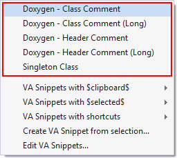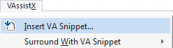 VA Snippets with-titles-only typically hold large or infrequently used blocks of code. These VA Snippets can be invoked via the VA Quick Action and Refactoring menu (Shift+Alt+Q in whitespace),